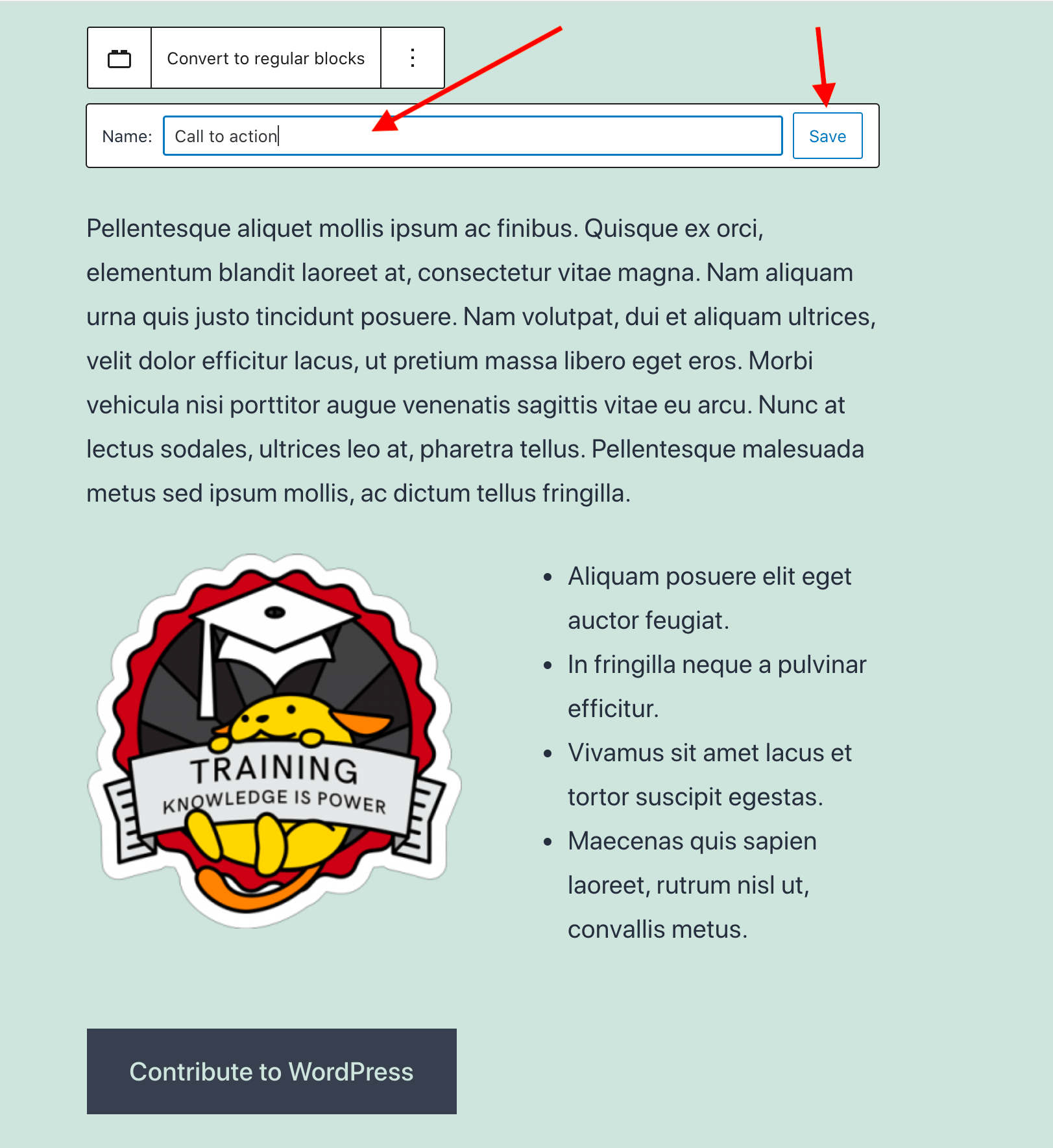 - Give an example by creating Reusable Blocks.