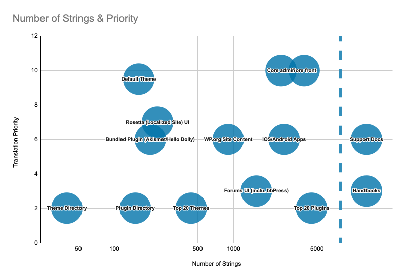 If you’re still not sure where to go next, you can decide based on the impact and effort required. Below is a rough prioritization of various translation projects, based on their importance and the number of strings.